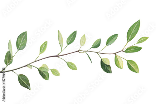 Delicate Branch with Vibrant Leaves . Transparent background PNG