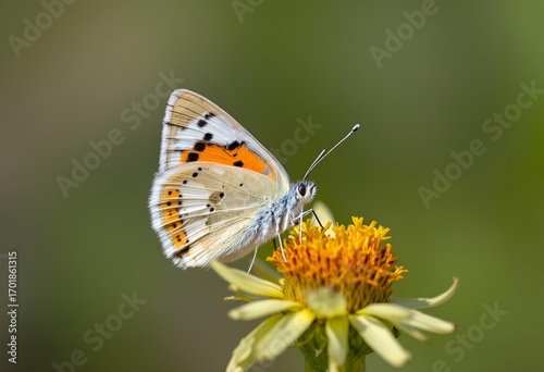 Delicate Butterfly on Yellow Wildflower, Macro Photography