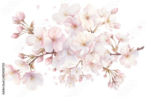 Delicate cherry blossom branch displaying blooming pink flowers with soft petals against a plain white background, symbolizing spring's arrival in nature's vibrant beauty
