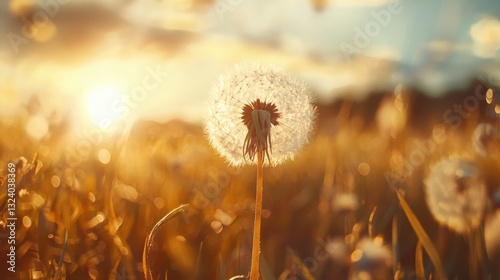 Delicate dandelion gently swaying in a vibrant field representing the beauty of a thriving life and natural abundance