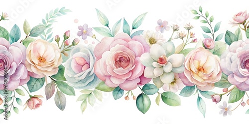 Delicate, dreamy watercolor flowers in soft pastel hues swirl together to create a whimsical, hand-painted border perfect for adding a touch of elegance to designs.