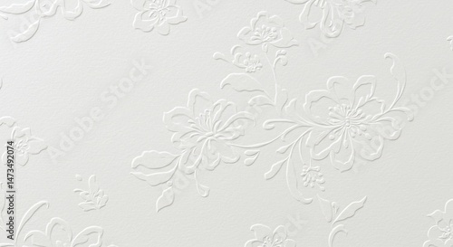 Delicate Embossed Flowers on a Pure White Paper Texture Background for Elegant Designs
