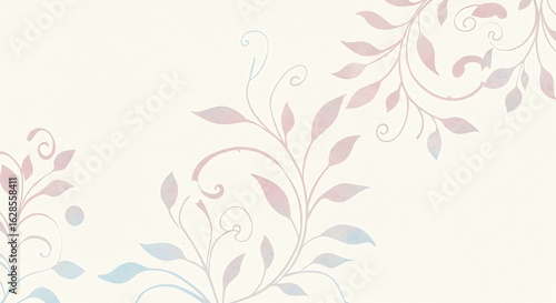 Delicate floral pattern with swirling vines and leaves in pastel hues against a soft cream background.