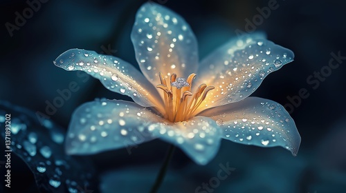 Delicate flower with soft petals, illuminated by gentle light, showcasing intricate textures, ideal for nature themes.