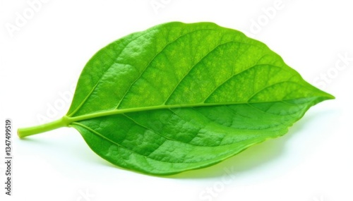 Delicate green leaf isolated on white background, single, texture, foliage