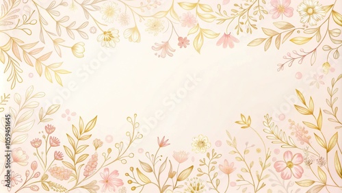 Delicate, hand-drawn script and floral motifs in soft pink and gold hues against a creamy white background, design, elegance, feminine
