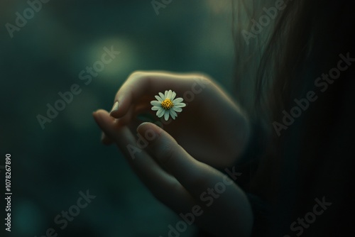 Delicate Hands Holding a Single Flower in Soft Light, Symbolizing Beauty, Nature, and Fragility, Capturing an Intimate Connection with the Environment