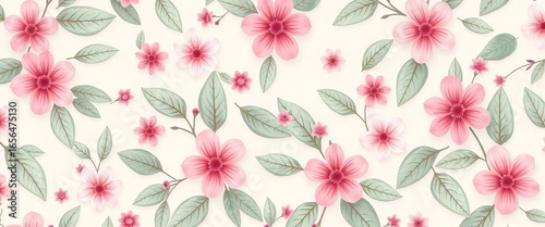 Delicate pastel floral seamless pattern with leaves on a neutral background, minimalist, design element