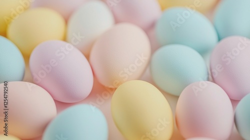 Delicate pastel-colored eggs in soft shades of pink, blue, and yellow create a vibrant and cheerful display for spring festivities. Perfect for Easter celebrations and creative decor