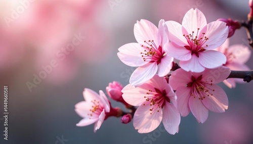 Delicate pink cherry blossoms, full bloom, intricate design , illustration, soft, blossom
