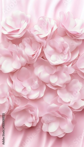 Delicate pink fabric with 3D floral pattern - background for design. Romantic pastel floral texture