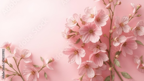 Delicate pink floral pattern on a soft pink background, retro,summer,decoration