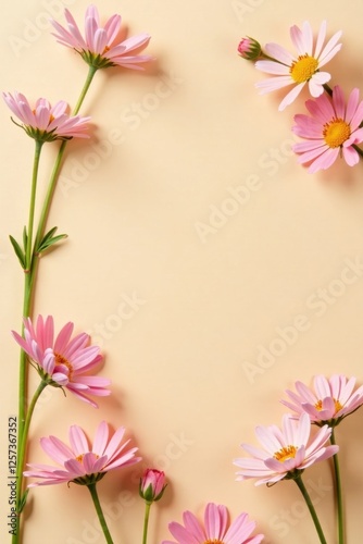 Delicate Pink Flowers Arranged in a Frame on a Pastel Background, Ideal for Invitations or Greeting Cards