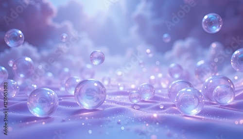 Delicate purple bubbles float over a soft, textured surface. Perfect for Skincare Products