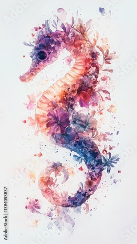Delicate seahorse formed from tropical flowers in soft pastel hues. Generative AI