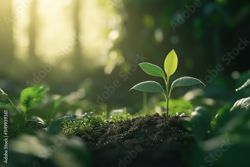 Delicate seedling symbolizing new growth amidst tranquil foliage