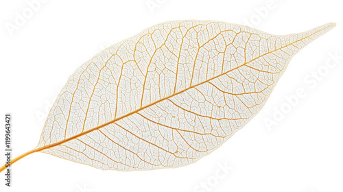 Delicate skeletal leaf on a white isolated background, showcasing intricate veining and unique texture perfect for nature-themed designs.