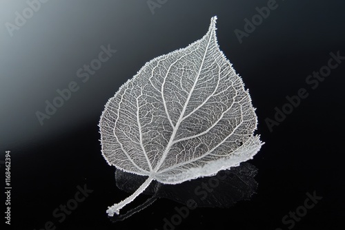 Delicate Skeleton Leaf Reflecting on Dark Surface