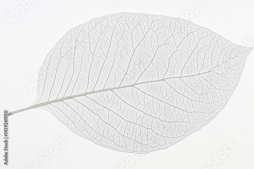 Delicate translucent leaf showcasing intricate vein patterns against a clean white background