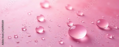 Delicate water drops glistening on a pale pink background with intricate texture and subtle reflections, reflective, texture