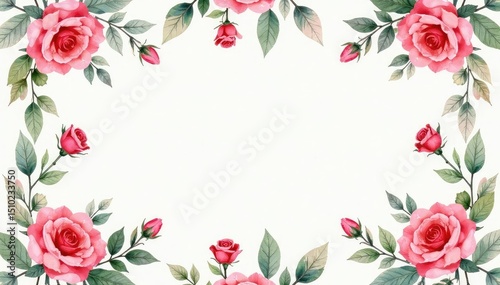 Delicate watercolor roses & leaves, repeating pattern, seamless, texture, botanical