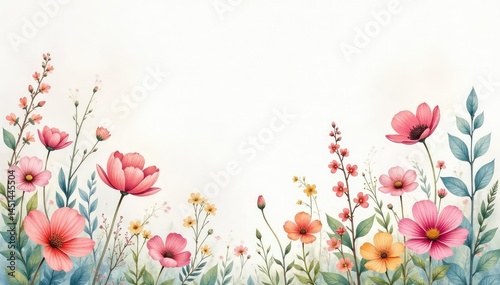 Delicate watercolor wildflowers, soft pastel tones, endless repeat, design element, background