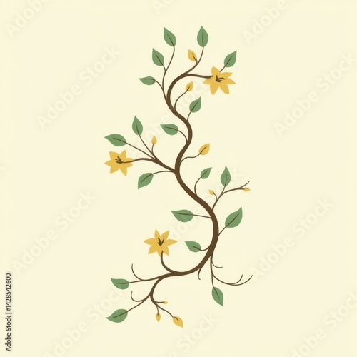 Delicate yellow flowers bloom on winding branches against a soft beige background during a serene afternoon in springtime Generative AI