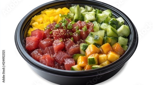 Delicious and Fresh Poke Bowl with Tuna and Assorted Vegetables and Fruits