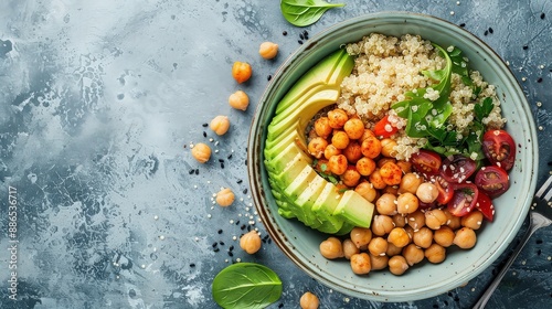 Delicious and Healthy Quinoa Bowl with Avocado, Chickpeas, Tomatoes, and Spinach