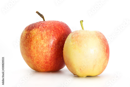 Delicious appetizing beautiful fresh two red apples isolated on a white background.