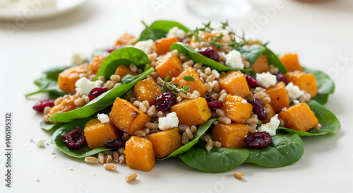 Delicious Autumnal Salad With Roasted Butternut Squash And Fresh Spinach