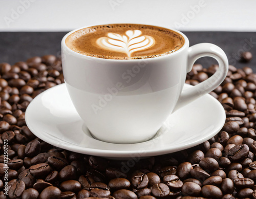 Delicious Cappuccino with Latte Art and Coffee Beans