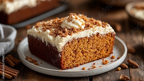 delicious carrot cake slice with cream cheese frosting and spices for dessert enjoyment