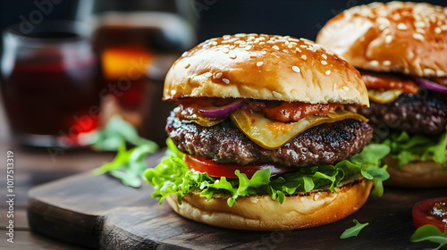 Delicious Cheeseburger with Pickles, Onions and Lettuce.