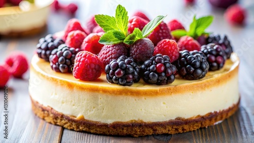 Delicious Cheesecake with Fresh Berries: Creamy Texture, Raspberry, Blackberry, Biscuit Crust
