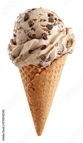 Delicious chocolate chip ice cream cones a sweet temptation isolated on transparent background