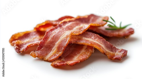 Delicious crispy bacon strips on a clean white background