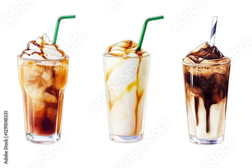 Delicious frappe drinks displayed on a clean white background for an inviting presentation