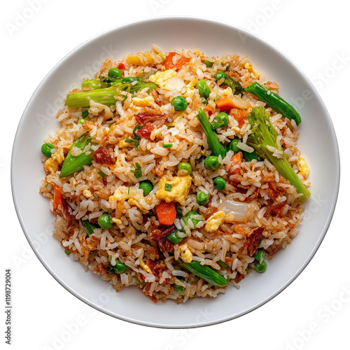 Delicious fried rice with vegetables and eggs. transparent background