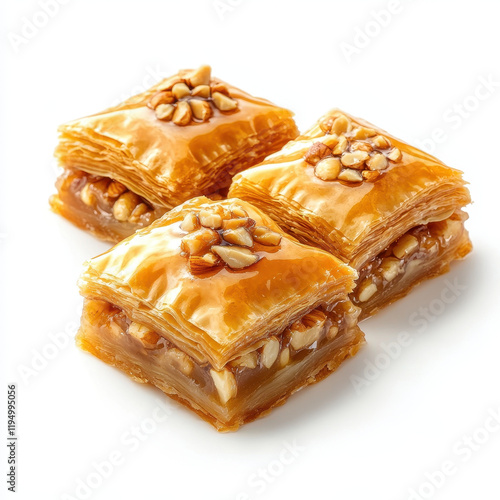 Delicious honey dipped baklava with flaky layers and nuts, perfect for dessert