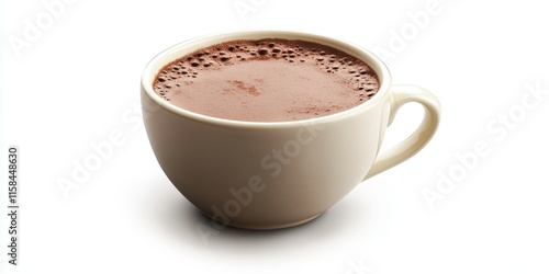 Delicious hot chocolate served in a cup, isolated against a white background, showcasing the rich texture and inviting appearance of this delightful hot chocolate beverage.