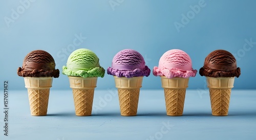 Delicious Ice Cream Cones A Row of Colorful Scoops