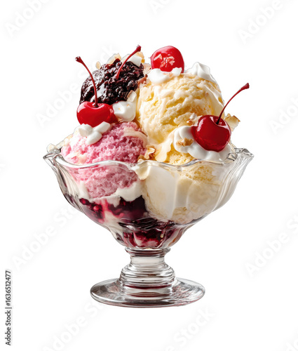 Delicious ice cream sundae dessert table food bright indulgence isolated on transparent background, png