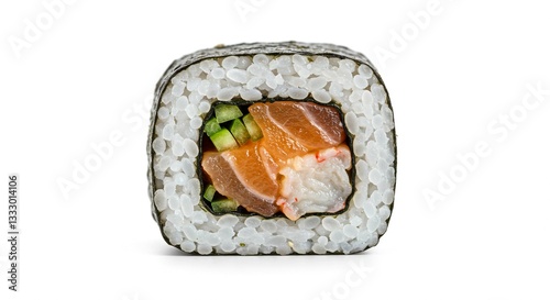 Delicious Maki Sushi Roll with Salmon Cucumber and Crab Close up Studio Shot