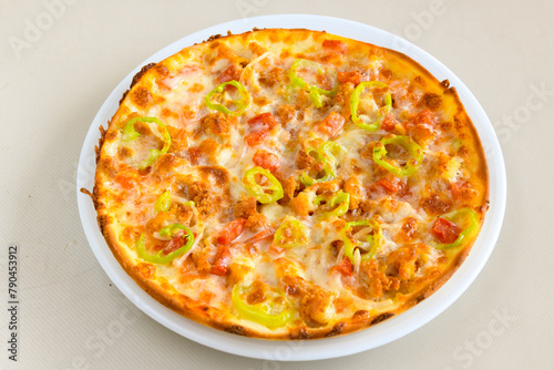 Delicious mixed pizza with rich content. Menu concept of choice and diversity. Pepperoni, Formaggi, Veggie, Karisik pizza