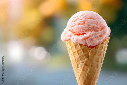 Delicious pink ice cream in a waffle cone, perfect for summer enjoyment outdoors.