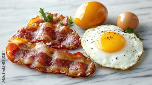 Delicious Plate of Eggs and Crispy Bacon Ready to Enjoy for Breakfast