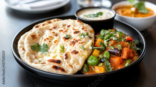 Delicious Plate of Food Accompanied by Two Bowls of Flavorful Soup