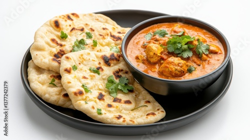 Delicious Plate of Food with Bowl of Sauce and Fresh Bread on Table