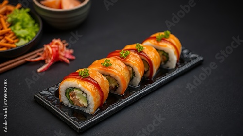 Delicious Plate of Su Su Rolls Accompanied by Fresh Colorful Vegetables Creating a Vibrant Meal Experience